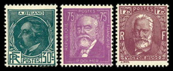 1933, Famous Men complete (Scott 291-293), complete set of singles, o.g., never hinged, Fine to Very Fine. Yvert 291-293. Scott $110. (Image)