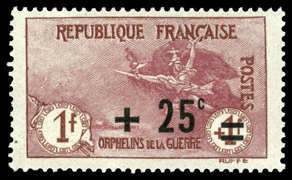 1922, 25c on 1fr + 1fr War Orphans (Scott B18), single, o.g., never hinged, Fine to Very Fine. Yvert 168. Scott $60. (Image)