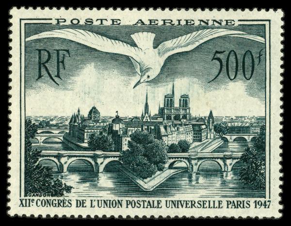 1948, Allegory of Air Mail overprinted (Scott C54), single, o.g., never hinged, Fine to Very Fine. Scott $45. (Image)