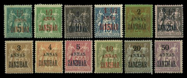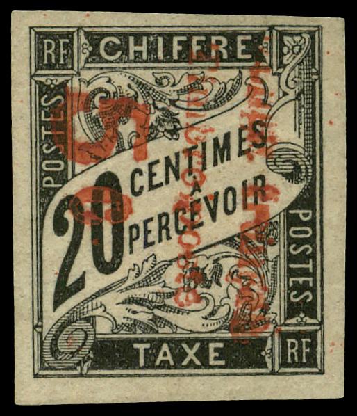 1903, French Colonies Postage Dues overprinted (Scott Q1-Q2), singles, o.g., hinged, Fine to Very Fine. Scott $85. (Image)