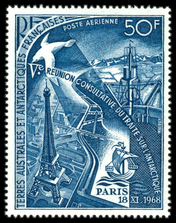 1969, 5th consultative Meeting of the Antartica Treaty Powers (Scott C17), single, o.g., never hinged, Fine to Very Fine. Scott $45. (Image)