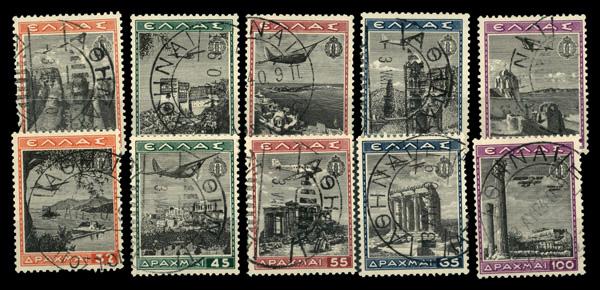 Airmail, 1940, Greek Youth Organization complete (Scott C38-C47), set of 10, complete set of singles, Fine to Very Fine. Michel 437-446. Scott $303. (Image)