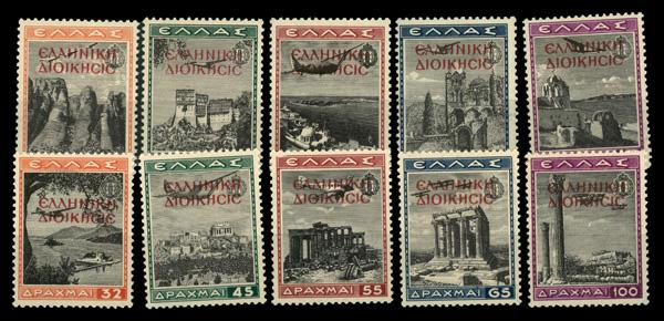 1940, 4th anniversary of the founding of the Greek Youth Organization overprinted (Scott N219-N228), complete set of singles, o.g., never hinged, Fine to Very Fine. Scott $168. (Image)