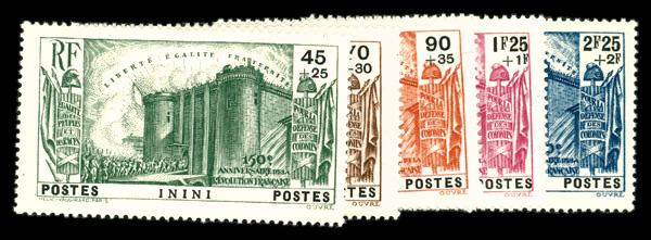 1939, French Revolution Issue complete (Scott B1-B5), complete set of singles, o.g., hinged, Fine to Very Fine. Scott $80. (Image)
