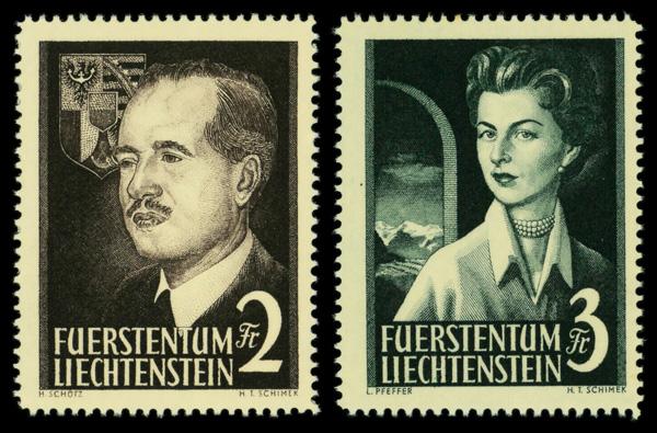 1955, Prince and Princess complete (Scott 287-288), set of 2, o.g., never hinged, Very Fine. Michel 332-333. Zumstein 276-277. Scott $140. (Image)