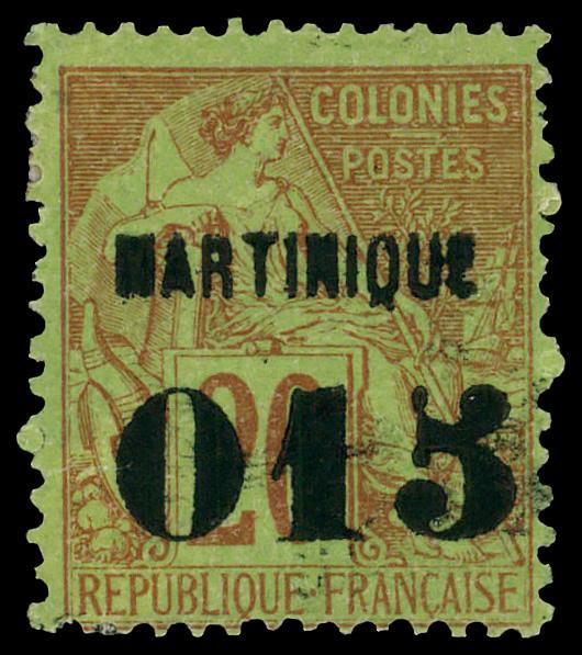 1888, French Colonies Commerce 20c red on yellow green surcharged and overprinted (Scott 8), single, Fine to Very Fine. Scott $65. (Image)