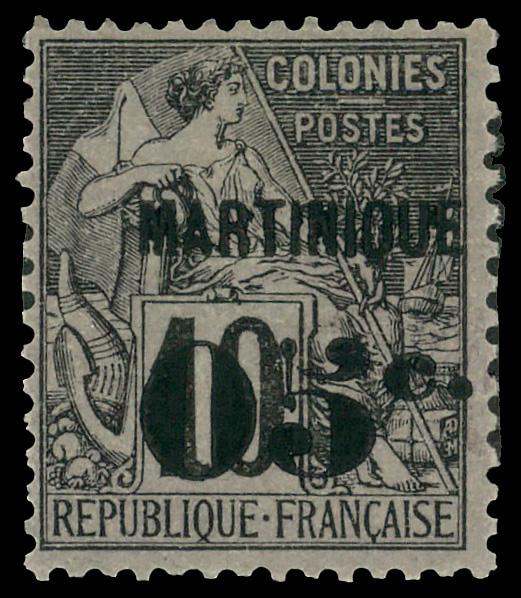 1888, French Colonies Commerce 10c black on lavender surcharged and overprinted (Scott 12), single, o.g., hinged, Fine to Very Fine. Scott $120. (Image)