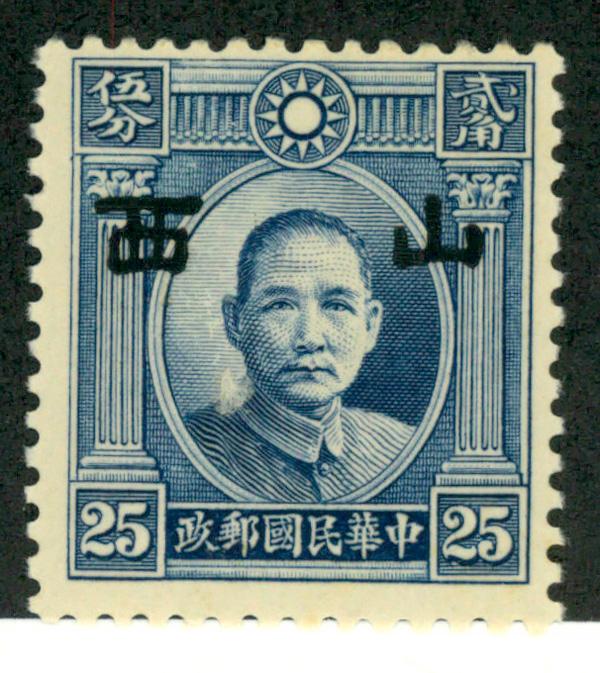 1941, 25c ultramarine Dr. Sun Yat-sen overprinted (Scott 5N4a), single, o.g., never hinged, Fine to Very Fine. Scott $63. (Image)