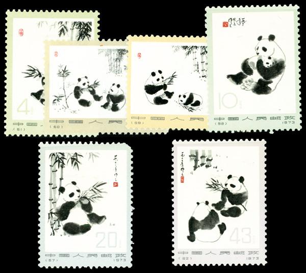 1973, Giant Pandas (N14) complete (Scott 1108-1113), complete set of singles, o.g., lightly hinged, Fine to Very Fine. Yang N57-62. Scott $220. (Image)