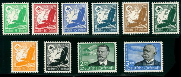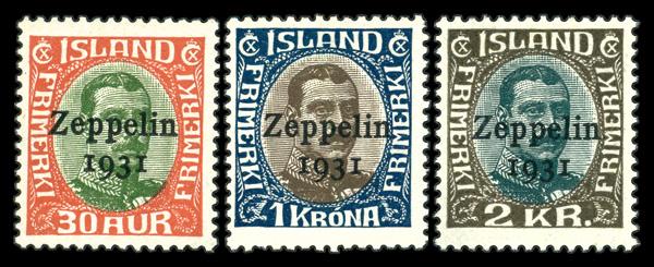 Airmail, 1931, Zeppelins complete (Scott C9-C11), set of 3, complete set of singles, o.g., never hinged, Fine to Very Fine. Michel 147-149. Facit 162-164. Scott $97. (Image)