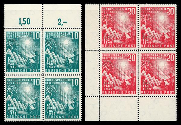 1949 Federal Assembly complete (Scott 665-666), blocks of 4, o.g., never hinged, Very Fine to Extremely Fine. Michel 111-112. Scott $300. (Image)