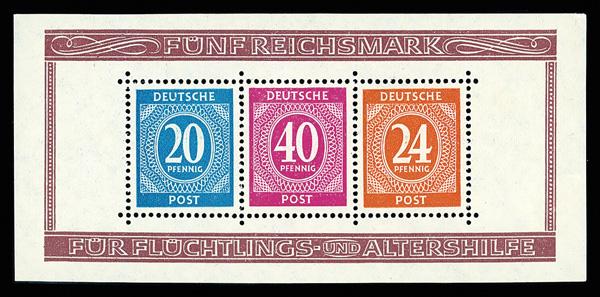 1946, Numerals souvenir sheets perforated and imperf set (Scott B294-B295), complete matched set of souvenir sheet of 3, o.g., never hinged, Very Fine. Scott $90. (Image)