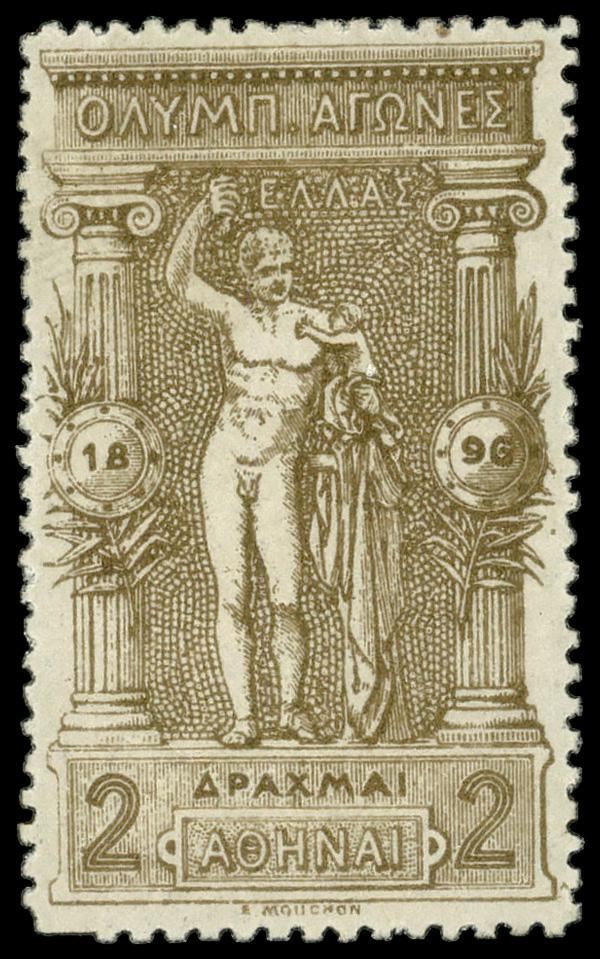 1896, 1st Modern Olympic Games, 2d bister (Scott 126), single, o.g., lightly hinged, Fine to Very Fine, short perf bottom left. Scott $325. (Image)