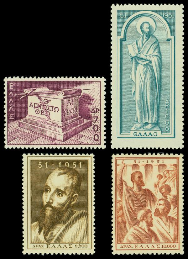 1951, St. Paul's Visit to Athens complete (Scott 535-538), set of 4, o.g., never hinged, Fine to Very Fine. Michel 578-581. Scott $218. (Image)