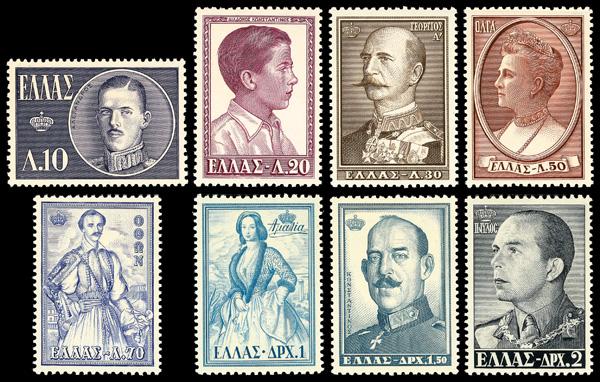 1956, Royal Family complete (Scott 587-600), set of 14, o.g., lightly hinged, Very Fine. Michel 637-650. Scott $120. (Image)