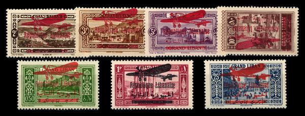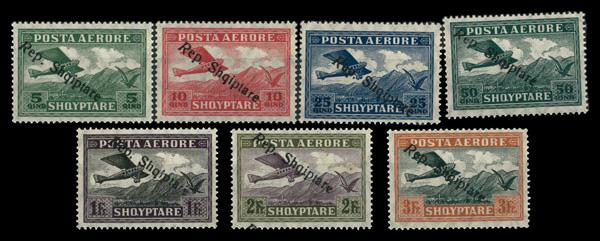 1925, Airpalen crossing mountains, 5q green - 3fr brown orang & dark green complete (Scott C8-C14), complete set of singles, o.g., never hinged, Fine to Very Fine. Scott $60. (Image)