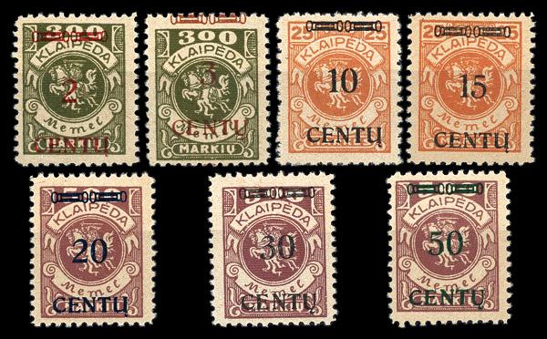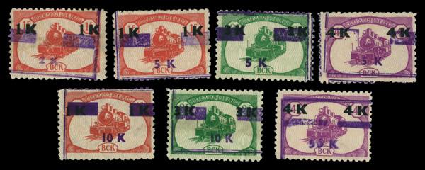 1970, Train 1k carmine - 4k purple overprinted with new value complete, complete set of singles, o.g., hinged, Fine to Very Fine. COB CP43-CP49; €525 ($570). (Image)