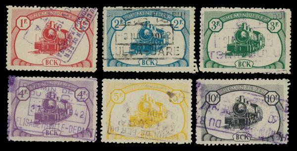 1942, Train 1fr carmine - 10fr black complete, complete set of singles, Fine to Very Fine. COB CP18-CP23; €800 ($860). (Image)