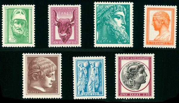 1959, 10l-2.50d Definitives, complete (Scott 632-638), set of 7, o.g., never hinged, Very Fine. Scott $51. (Image)