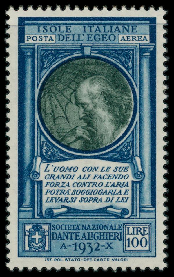 1932, 100l Leonardo da Vinci for the Dante Alighieri Society (Scott C14), single, o.g., never hinged, Fine to Very Fine. Scott $48. (Image)