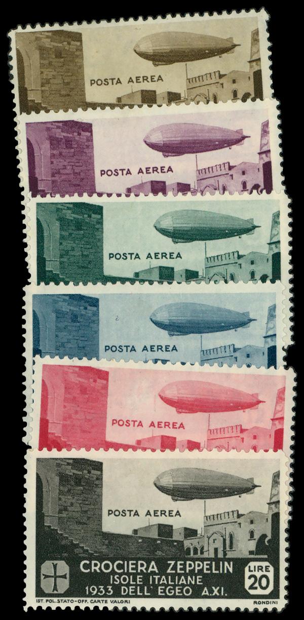 1933, Graf Zeppelin over Rhodes Complete (Scott C20-C25), complete set of singles, o.g., hinged, Fine to Very Fine. Scott $510. (Image)