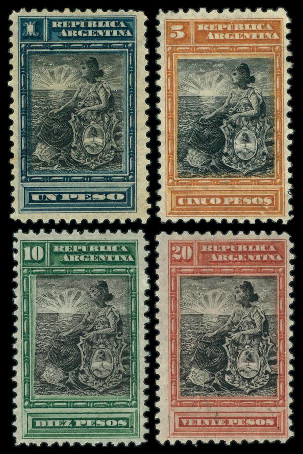 1899--1903, Allegort, Seated Liberty, 1p blue & black - 20p red & black high values (Scott 139-142), singles, o.g., hinged, Fine to Very Fine. Scott $343. (Image)