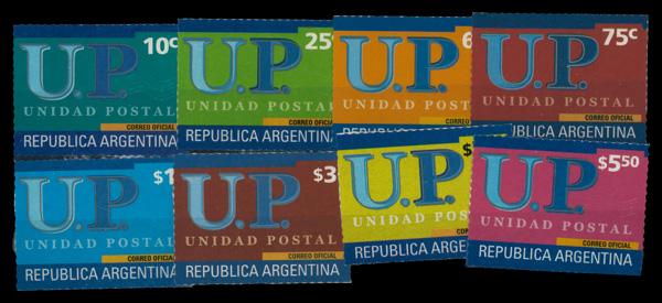 2001, Unidad Postal 10c blue green - 5.50p rose complete (Scott 2143E-2143L), complete set of singles, o.g., never hinged, Fine to Very Fine. Scott $102. (Image)