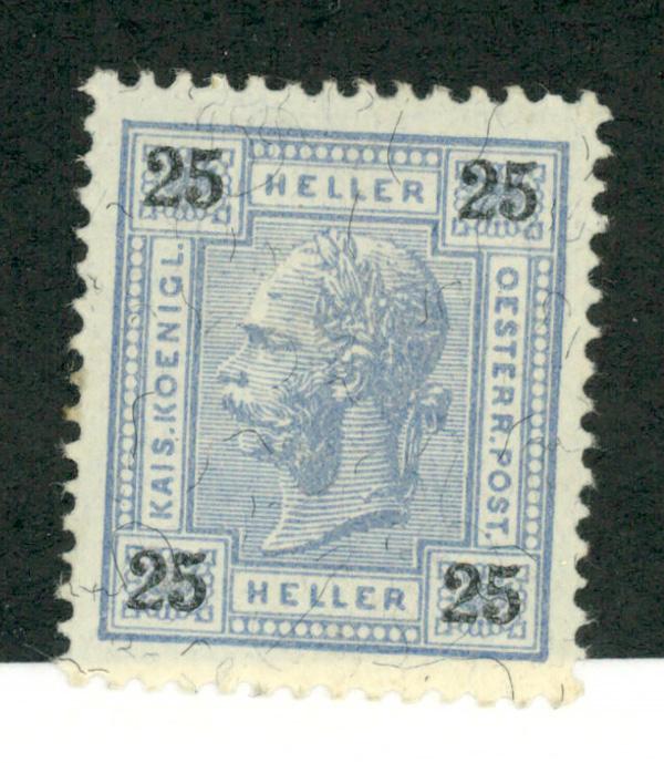 1899, Franz Joseph, 25h ultramarine & black, without varnish bars (Scott 77), single, o.g., hinge remnant, Fine to Very Fine. Michel 76. (Image)