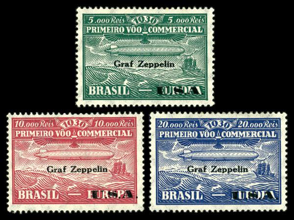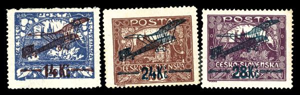Airmail, 1920, Airplane surcharges complete, perforated (Scott C4-C6), complete set of singles, o.g., hinged, Fine to Very Fine. Scott $88. (Image)