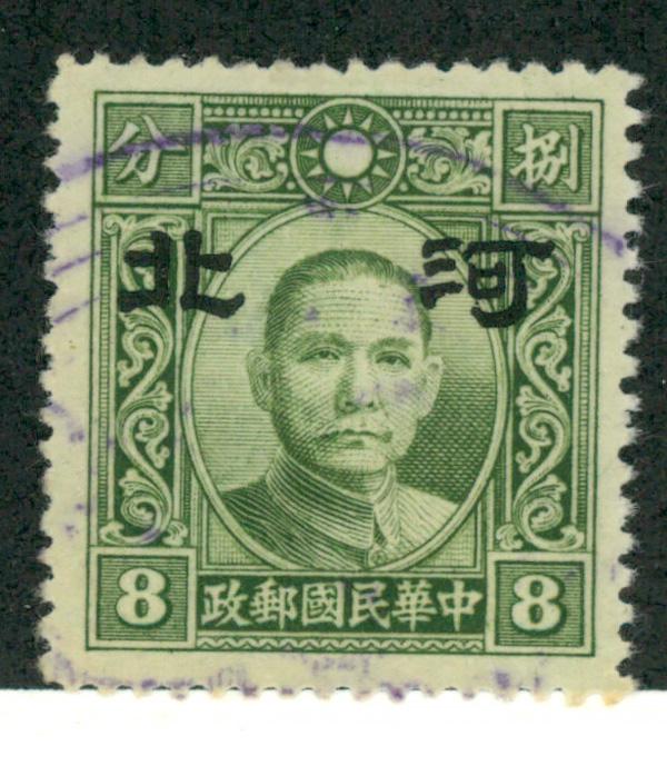 1941, 8c olive green Dr. Sun Yat-sen overprinted type II (Scott 4N25), single, Fine to Very Fine. Scott $1. (Image)