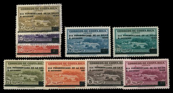 1940, Pan-American Health Day 10c-10col complete (Scott C46-C54), complete set of single, o.g., hinged, Fine to Very Fine, Scott C46, C47 and C49 are used. Scott $200. (Image)