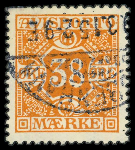 Newspaper Stamp, 1914, 38øre orange (Scott P18), single, Fine to Very Fine. Facit T18. Scott $190. (Image)