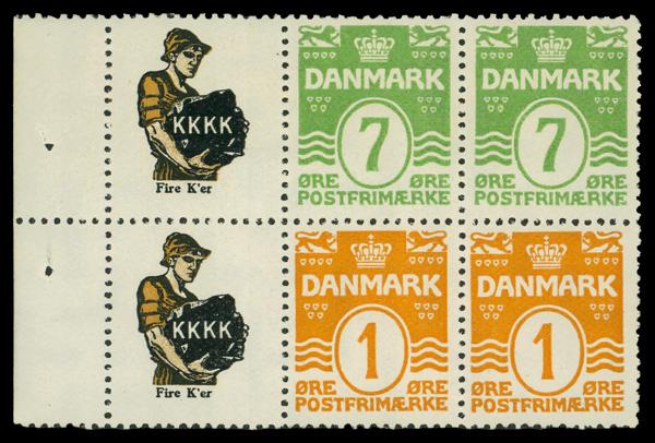 1929, Wavy Lines and numerals 1o orange and 7o apple green with advertizing labels (Facit RE31,34), booklet pane of 4 with labels, o.g., never hinged, Fine to Very Fine, This is a combination booklet pane. Scott $110. (Image)