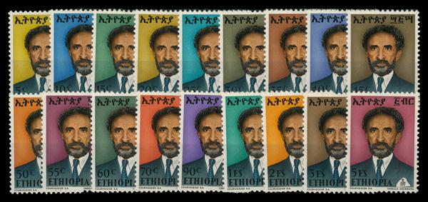 1973, Emperor Haile Selassie 5c - $5 complete (Scott 672-689), complete set of singles, o.g., never hinged, Fine to Very Fine. Scott $53. (Image)