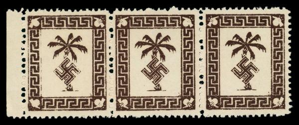 1943, brown Tunis Local Feldpost label (Michel 5a), strip of 3, unused without gum, Very Fine. Michel €540 ($580). (Image)
