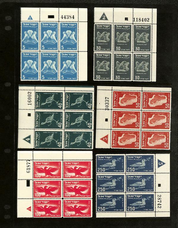 1950, First Issue complete (Scott C1-C6), set of 6, plate blocks of 6, o.g., never hinged, Fine to Very Fine. Bale 32-37; $130. (Image)