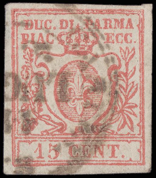 1859, 15c red (Scott 9), large balanced margins and canceled by a neat c.d.s., Very Fine, signed Em. Diena. Sassone 9. Scott $325. (Image)