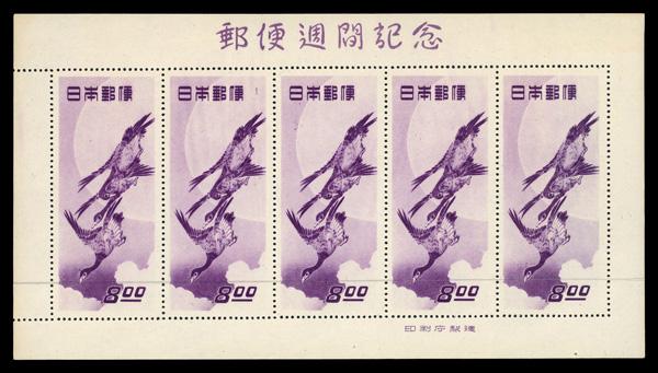 1949, Philatelic Week, miniature sheet of 5 (Scott 479a), o.g., never hinged (gum bends), Extremely Fine. J.S.C.A. C173 var. Scott $800. (Image)