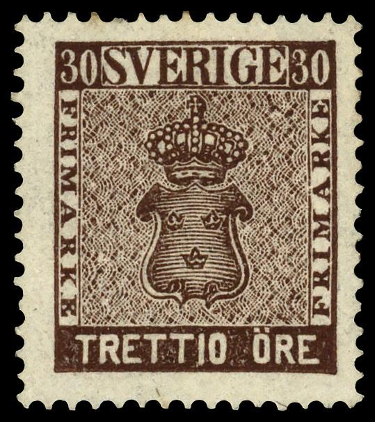 1858, 30ö brown (Scott 11), o.g., hinge remnant, Very Fine. Michel 11a. Facit 11. Scott $500. (Image)