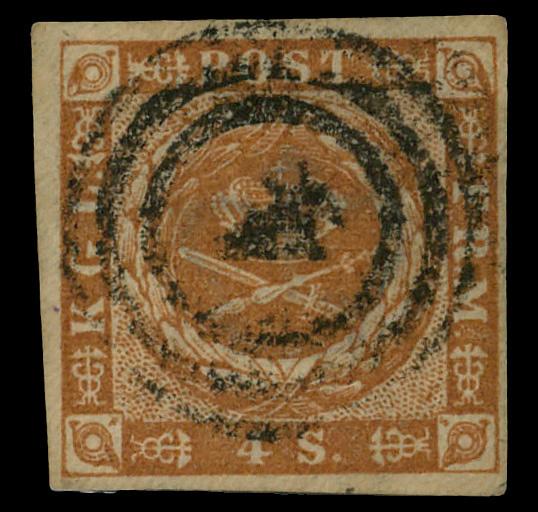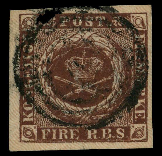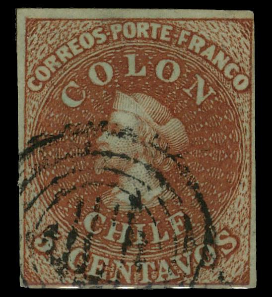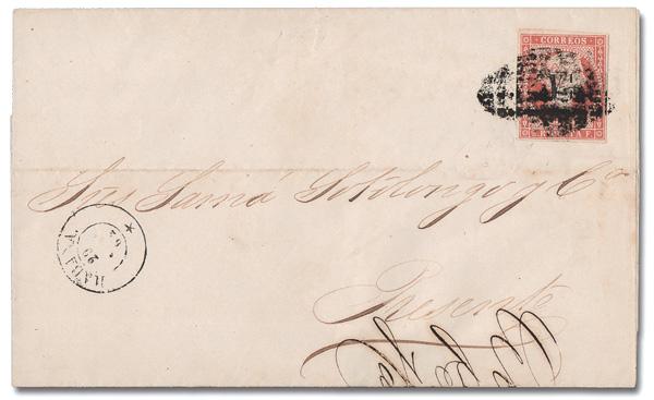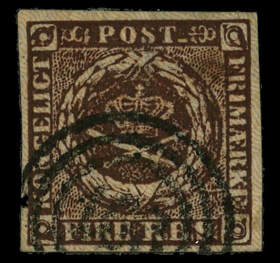 1854, ¼sgr black on red brown (Scott 1), single, Extremely Fine. Michel 1. Scott $60. (Image)