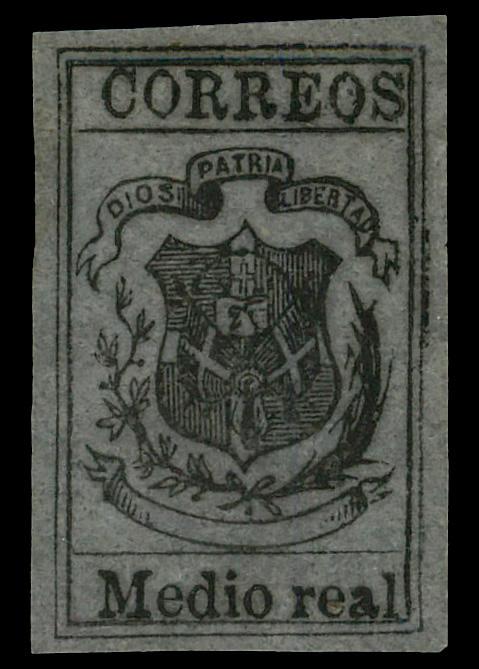 1867, ½r black on rose paper, Coat of Arms (Scott 13), single, unused without gum, Very Fine. Scott $150. (Image)