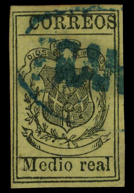 1868, ½r black on yellow paper, Coat of Arms (Scott 29), single, Very Fine. Scott $21. (Image)