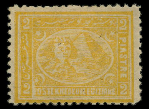 1872, 2pi dull yellow Sphinx and Pyramid (Scott 23), single, o.g., hinged, Fine. Scott $100. (Image)
