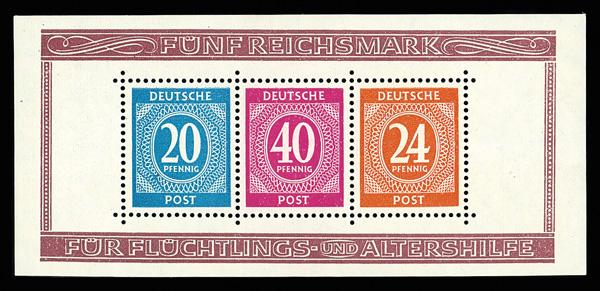 1946, Numerals souvenir sheets perforated and imperf set (Scott B294-B295), complete matched set of souvenir sheet of 3, o.g., never hinged, Very Fine. Scott $90. (Image)