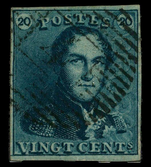 1849, 20c blue (Scott 2), single, Numerical cancel 4., Extremely Fine to Superb. Michel 2a. Scott $58. (Image)