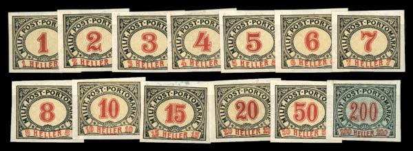 1904, Numerals 1h - 200h imperforated complete (Scott J1g-J13g), complete set of singles, o.g., hinged, Fine to Very Fine. Scott $125. (Image)