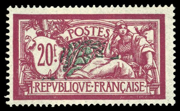 1926, Merson, 20fr magenta & green (Scott 132), single, o.g., hinged. Yvert 208. Scott $200. (Image)