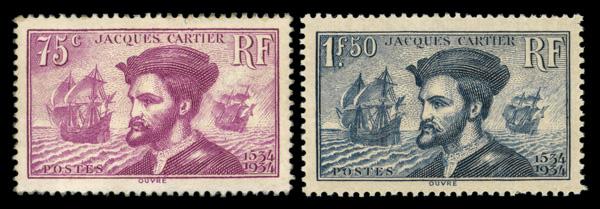 1934, Jacques Cartier complete (Scott 296-297), o.g., lightly hinged (1 stamp never hinged), Extremely Fine. Yvert 296-297. Scott $80. (Image)