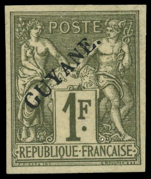 1892, 30c brown on bistre, 'GUYANE' diagonal overprint (Scott 26), Fine. Scott $40. (Image)