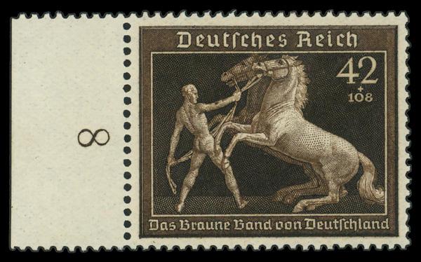 1939, 42pf+108pf Brown Ribbon (Scott B145), left margin single, o.g., never hinged, Fine to Very Fine. Michel 699. Scott $60. (Image)